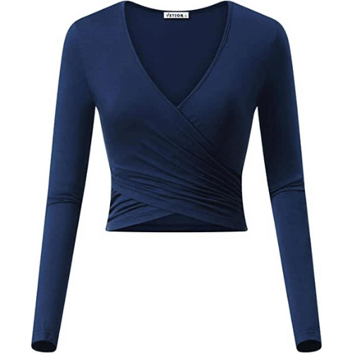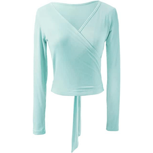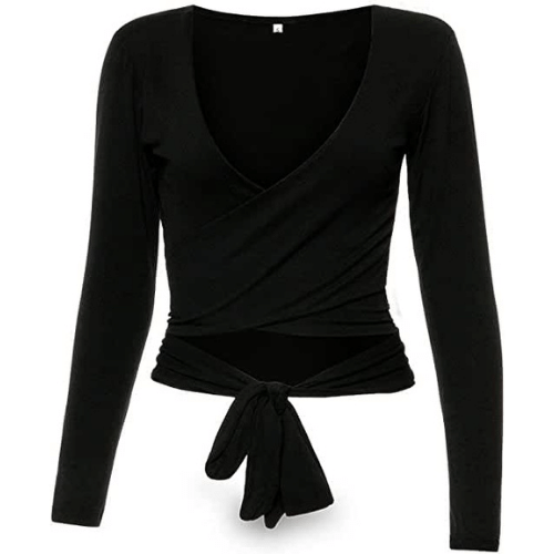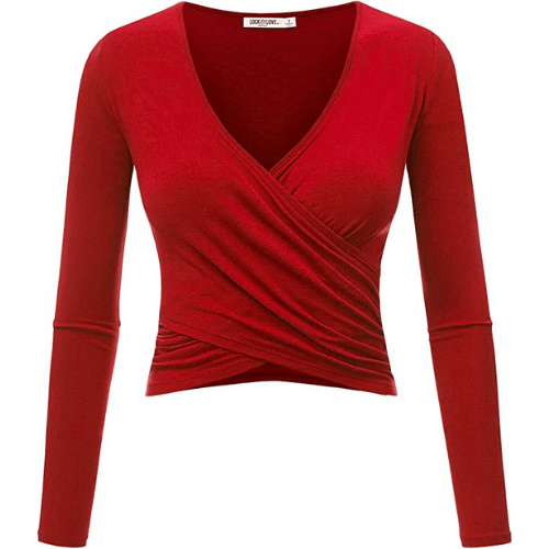 Sexy long sleeve wrap tops for women uses the classic deep V ballet design. The elegant tops is adjustable and can be tied in different ways. Reviewers love the fit and the free shipping!