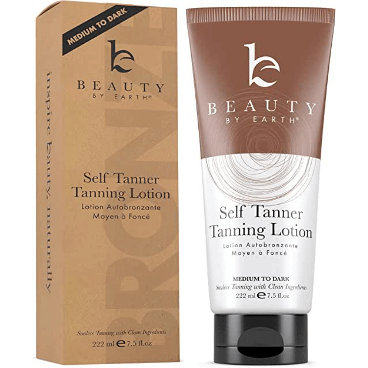 Beauty by Earth Self Tanner Tanning Lotion - Sunless Tanner with Organic Ingredients for Natural Glow, Long Lasting Fake Tan Lotion, Body Bronzer Quick Tan Tanning Cream, Medium to Dark Self Tanner
