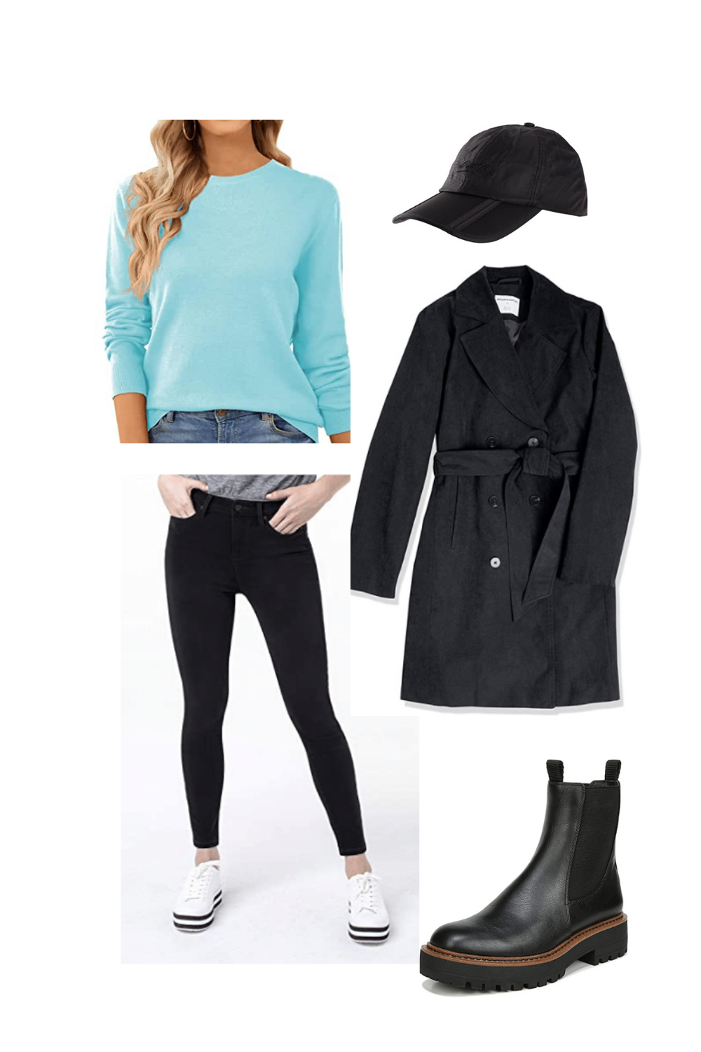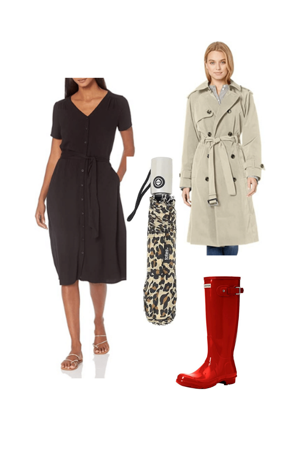 Double breasted trench in stone or black is a timeless piece that will elevate your look if it's raining or not!