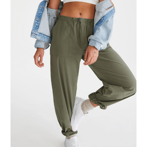 To head out, try pairing a pair of parachute pants with a simple tank, a pair of sneaks and top with a denim jacket. You'll be comfy and stylish, plus the jacket and pants have pockets to stash your essentials.
