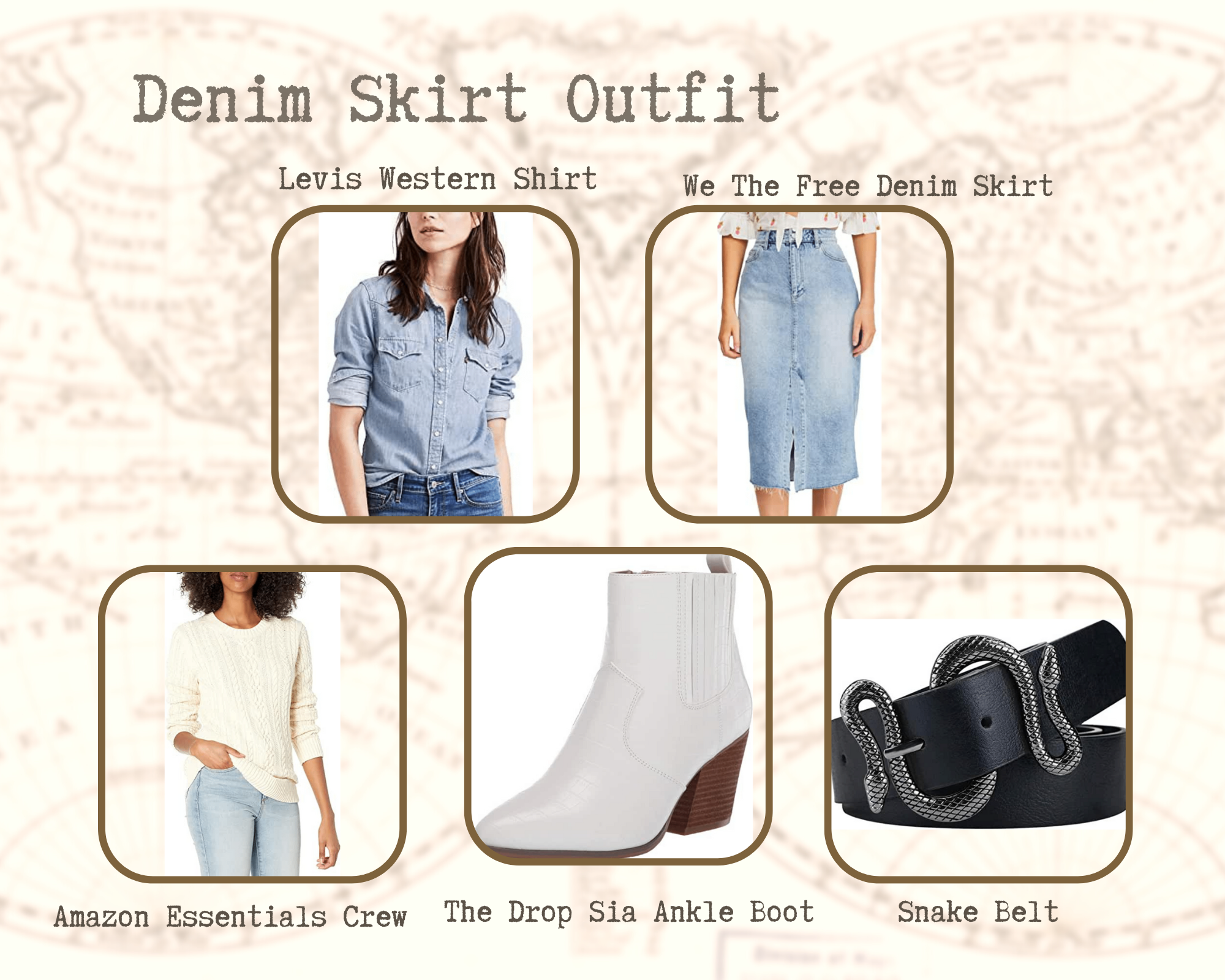 Denim skirts are always the perfect outfit, and they're especially great for fall winery days spent outdoors. We like this skirt from We The Free because it's slim and has just the right amount of distressed detailing. Pair it with a Levis shirt or and an Amazon Essentials sweater, pull on these fab white The Drop Sia Ankle Boots, and finish with a statement Snake Buckle Belt. Tap on the links to shop!