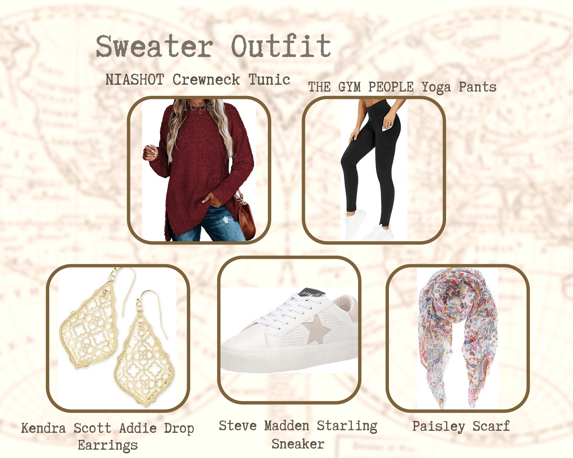 There's nothing better than a cozy sweater on a cool day, and this oversized Niashot Crewneck Tunic in burgundy is sure to keep you warm while also looking chic. Throw it over a pair of Gym People Yoga Pants they have pockets to stash your phone and cash, add some cute Steve Madden Starling Sneakers, slip on Kendra Scott Addie Drop Earrings , and wrap a Paisley Scarf around your neck and you're good to go. Tap to the links to shop!