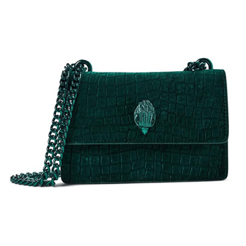 Stunning fabric crossbody with Kurt Geiger's signature rhinestone eagle in deep green is a great addition to your daily wear. Try it with denim on denim for a pop of color.