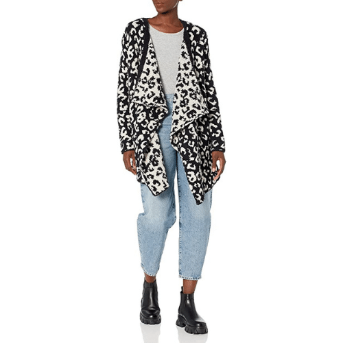 Made from a fluffy sweater knit, this cardigan will keep you warm and stylish in your cool office!