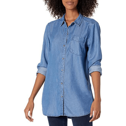 Daily Ritual Women's Tencel Relaxed-Fit Long-Sleeve Button-Up Tunic