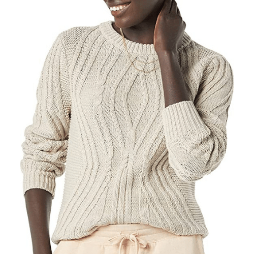 Amazon Essentials Women's 100% Cotton Crewneck Cable Sweater