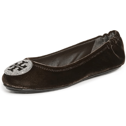 Crafted in rich velvet and finished with a crystalline logo medallion, these signature Minnie ballet flats by Tory Burch will have you feeling like a princess, even if you are at work!