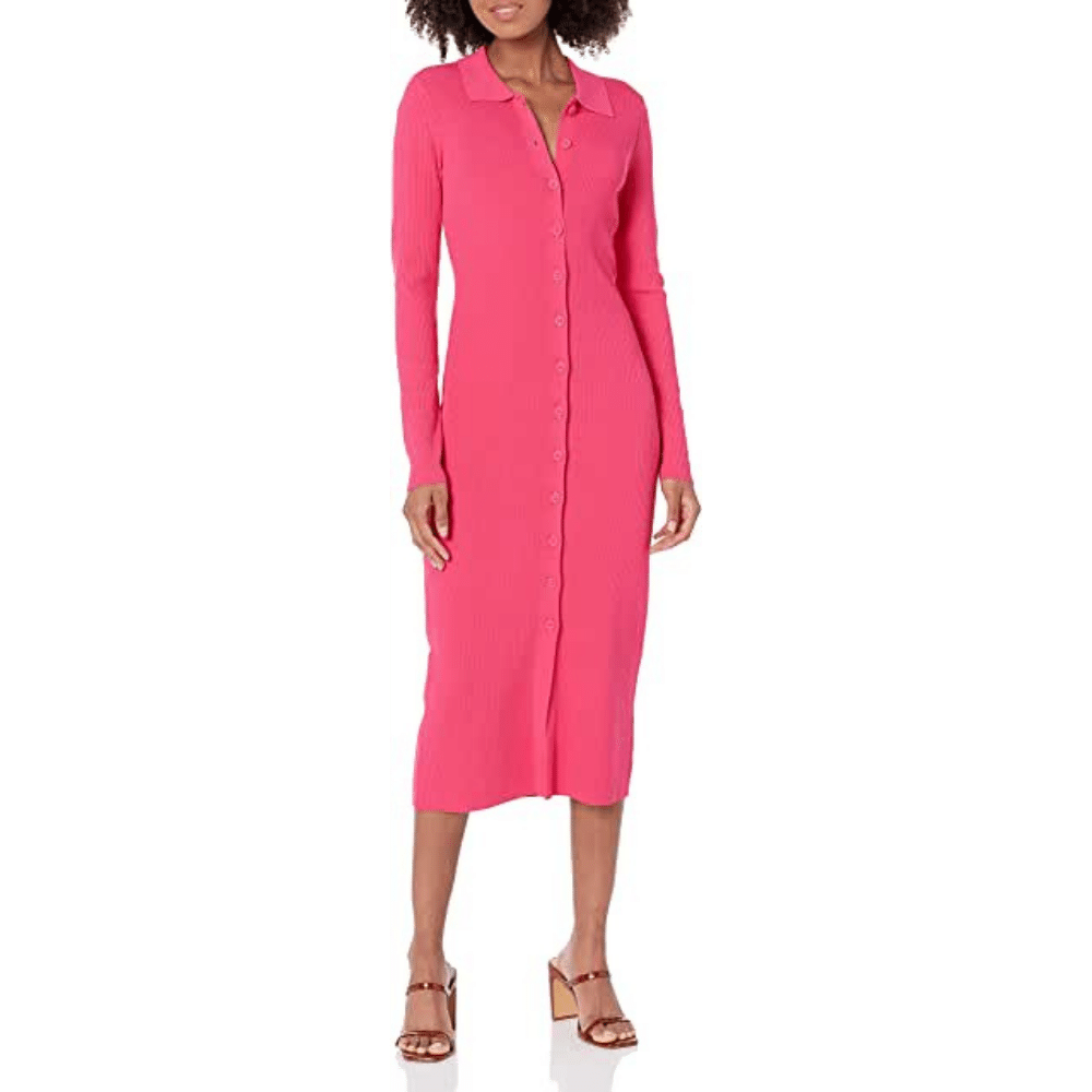 The Drop Women's Jaxon Rib Button Down Pink Sweater Dresses