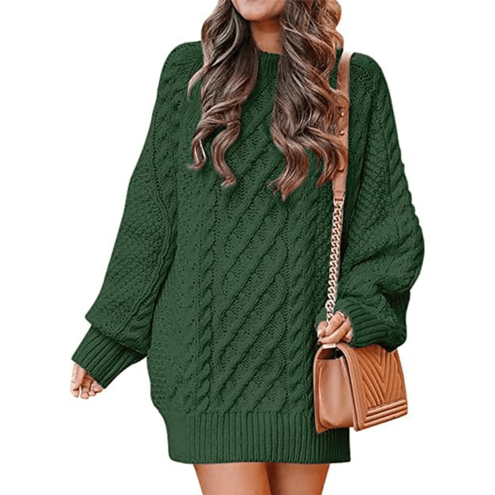 WONETA Women Crewneck Long Sleeve Length Oversized Cable Knit Chunky Pullover Short Sweater Dresses