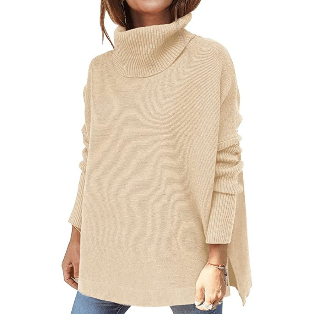 LILLUSORY Women's Turtleneck Oversized Sweaters 2022 Fall Long Batwing Sleeve Spilt Hem Tunic Pullover Sweater Knit Tops