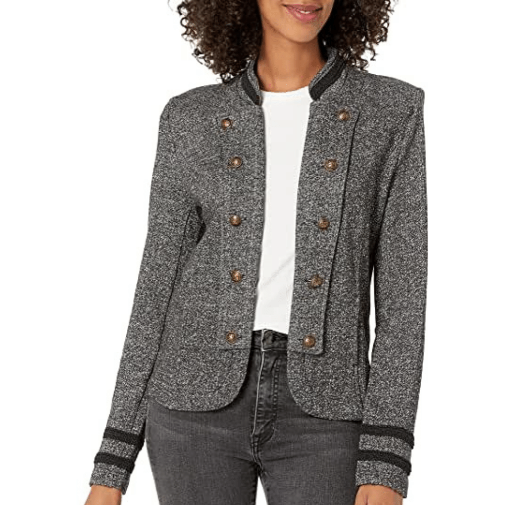 We love this Tommy Hilfiger Open Front Band Jacket. Instant style when paired with leggings and a simple tee.