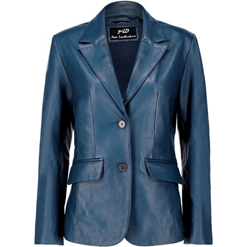 Jild Classic 2-Button Lambskin Leather Blazer Jackets for Women - Casual Coat Long Sleeves Suit Style Leather Jacket