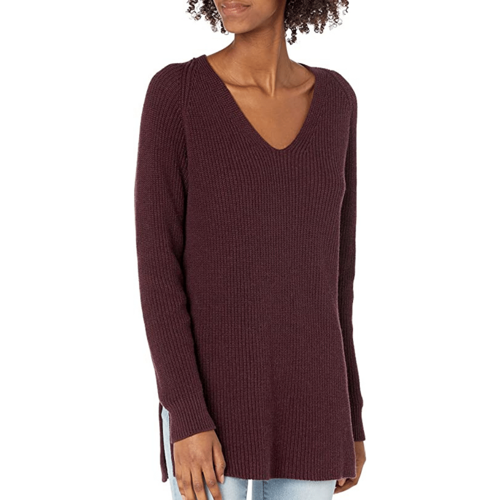Goodthreads Women's Cotton Shaker Stitch Deep V-Neck Sweater
