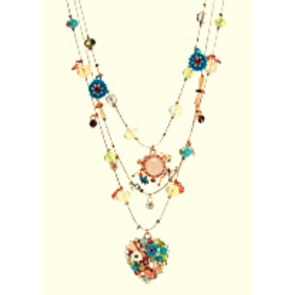 Betsey Johnson Woven Mixed Multi-Colored Bead Flower Heart Illusion Necklace