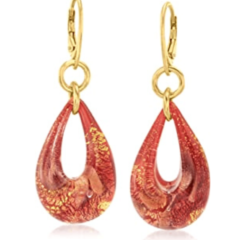 These Italian Murano Glass and 18kt gold over sterling silver earrings are the perfect finishing touch to add to any outfit.
