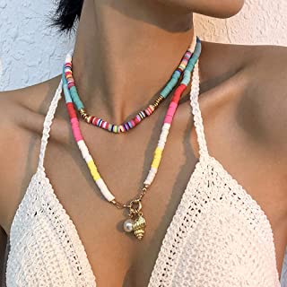 Purchase the Wiwpar Colorful Heishi Choker Beads Chain Surfer Layered Necklace today!