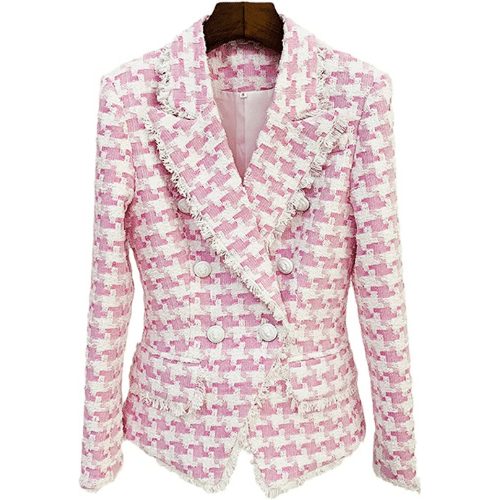 Winter Designing Thick Plaid Woven Fabric High Street Quality Bodycon Chin Tweed Jacket Women Blazer