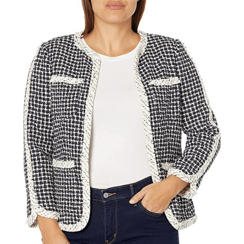 Karl Lagerfeld Paris Women's Tweed Jacket with Chain Detail