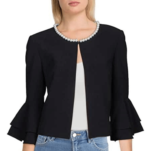 Tahari ASL Women's Pearl Neck Ruffle Sleeve Jacket