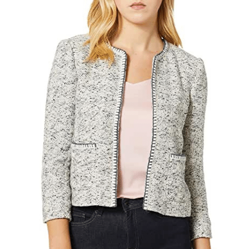 Gray and white speckled with go with everything in your closet from stretch pants to skirts. We're sure this will be your next go to jacket!