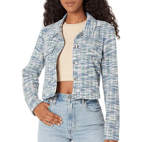 BCBGeneration Women's Relaxed Long Sleeve Button Down Tweed Jacket