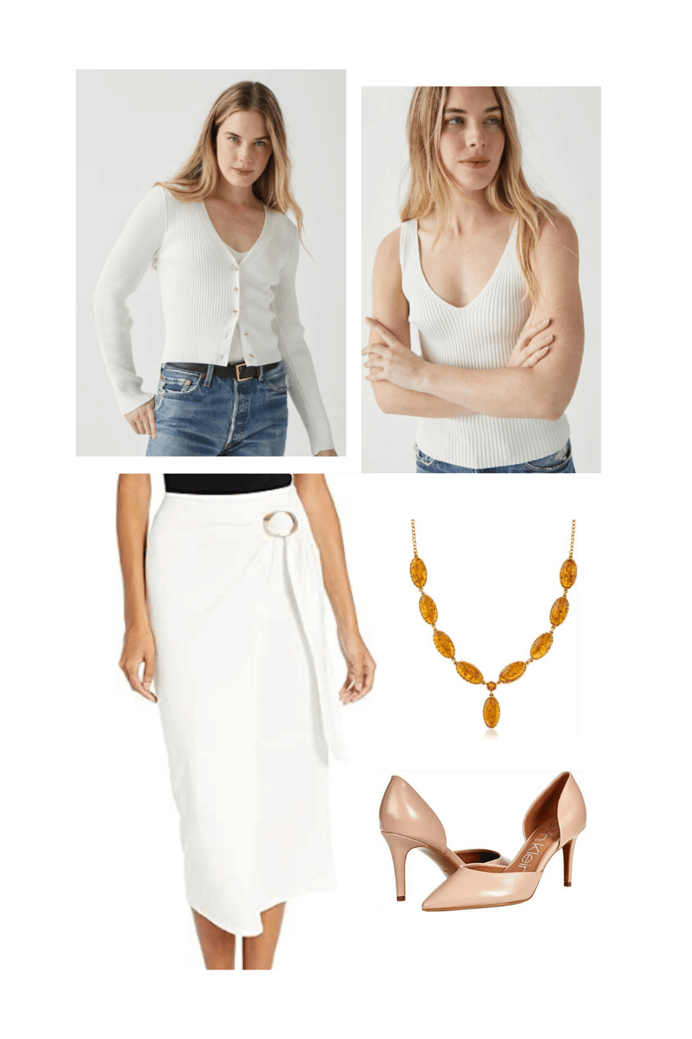 Try pairing a pencil skirt with a twin set during the day, then add some heels and statement jewelry once it’s time to transition into evening wear.