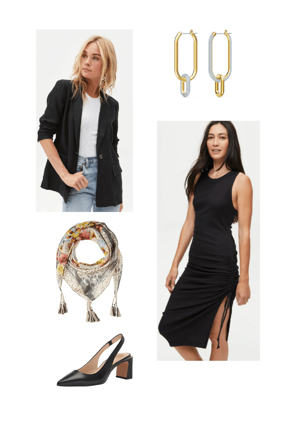 Alternatively, you could opt for a structured blazer and a tank dress; just change out your flats for some heels once you leave the office and add a great scarf and fun earrings.